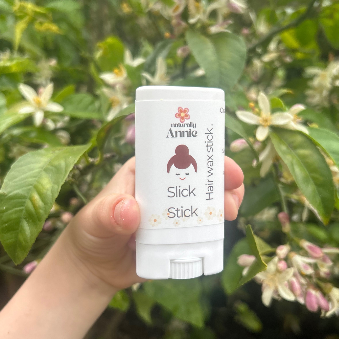 Slick Stick ingredients: Organic shea butter, New Zealand beeswax, organic jojoba oil, argan oil, organic caster oil, rosemary oil.